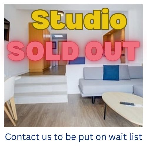 From the balcony or terrace of your Studio, you will enjoy a beautiful garden or sea view. There are 71 studios with garden view and 43 with sea view.